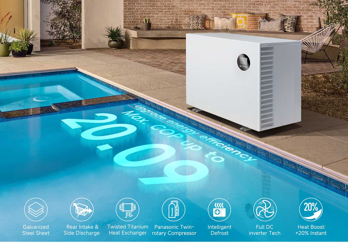 Jedná se o vysoce energeticky efektivní ohřívače bazénů, které fungují jako klimatizace. Používají malé množství energie k extrakci tepla z okolního vzduchu a jeho přenesení do vody v bazénu. Vzrušující věc na ohřívačích bazénu tepelných čerpadla je, že mohou také ochladit váš bazén, když je počasí příliš horké.